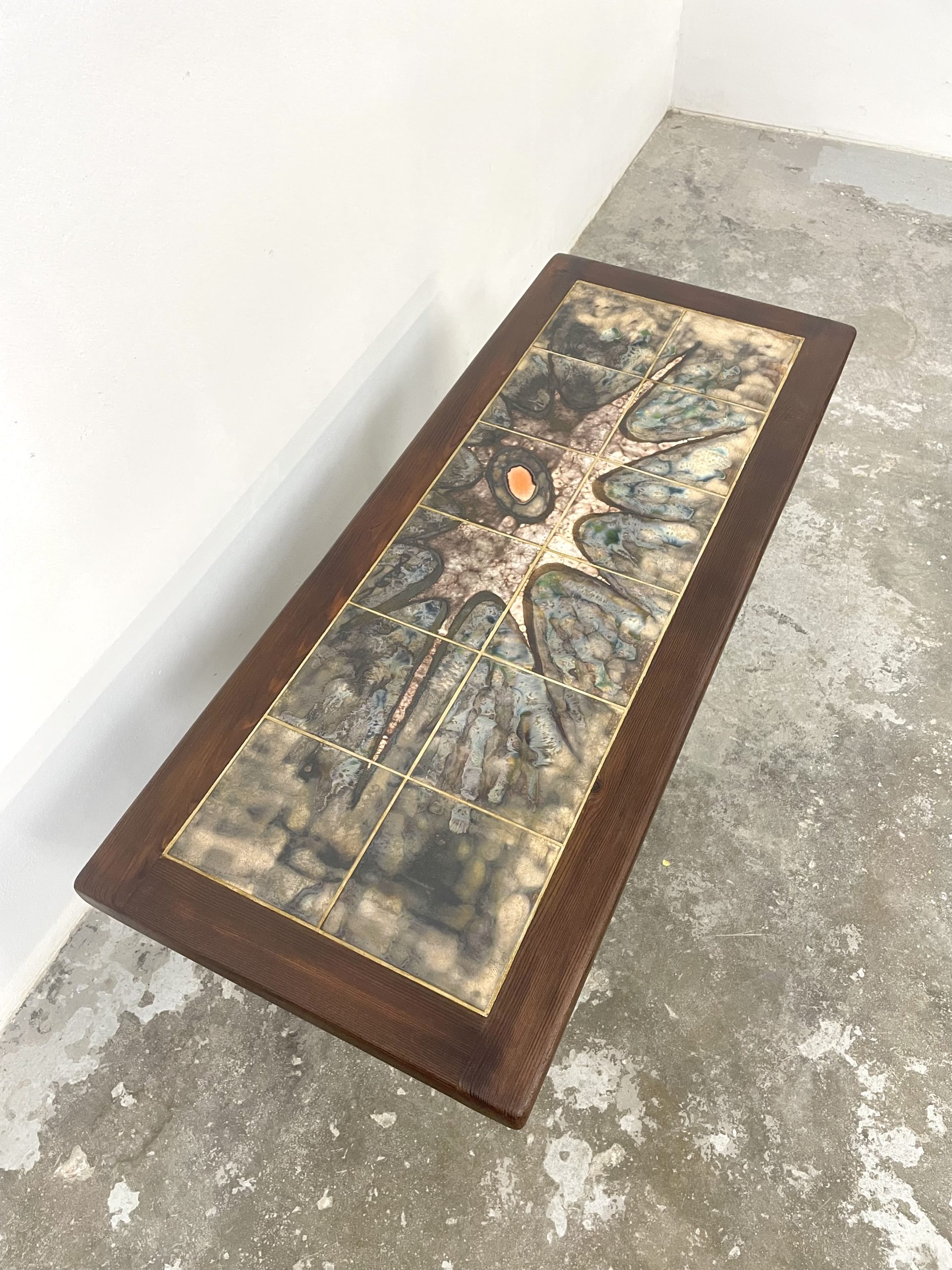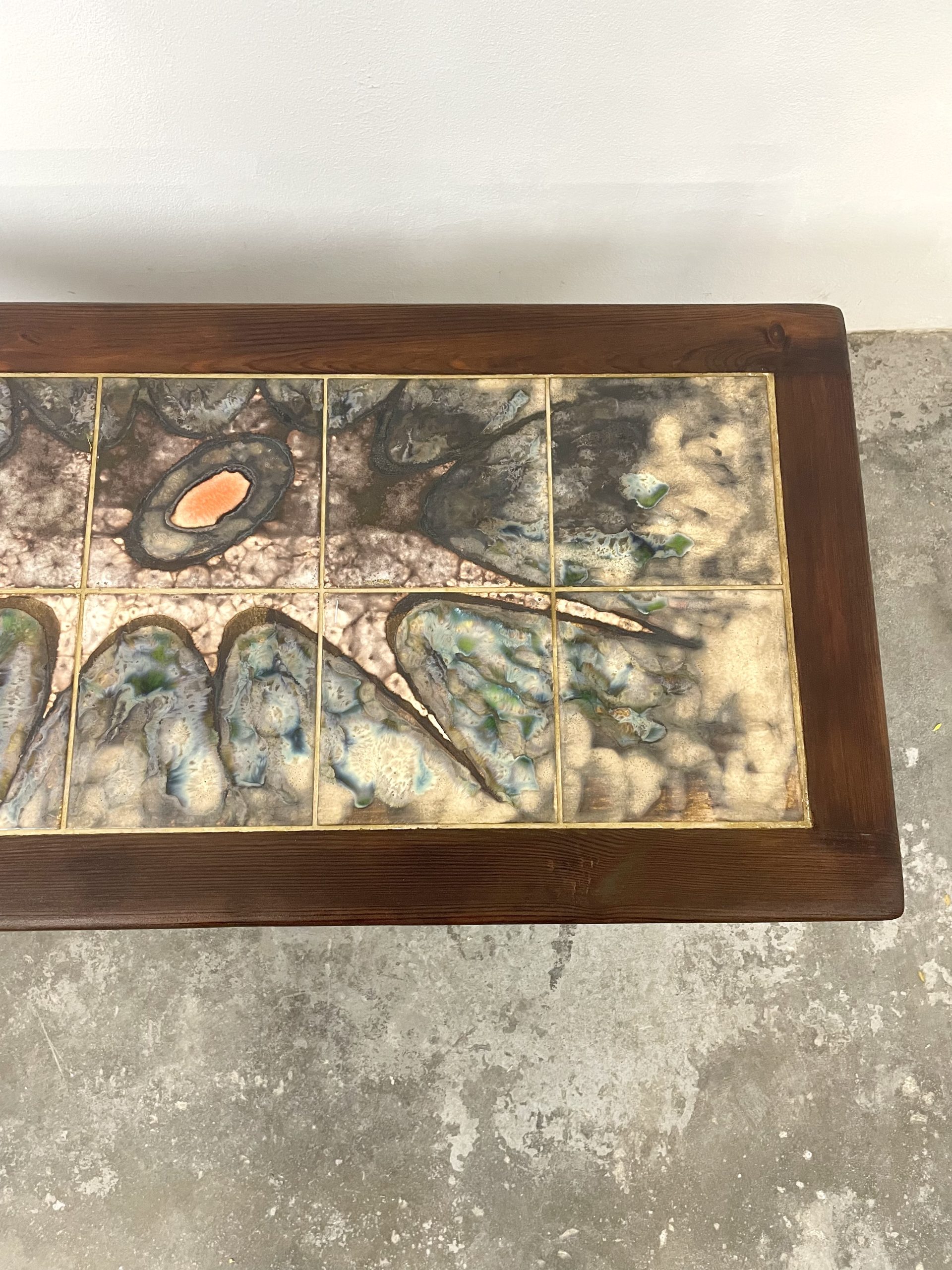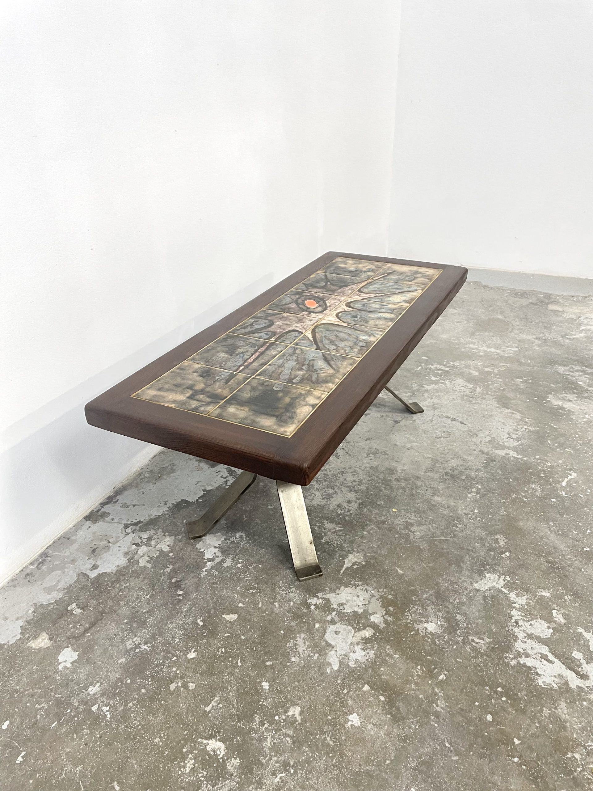 Mesa de centro de cerámica flat lava años 50 francesa, tipo Vallauris.