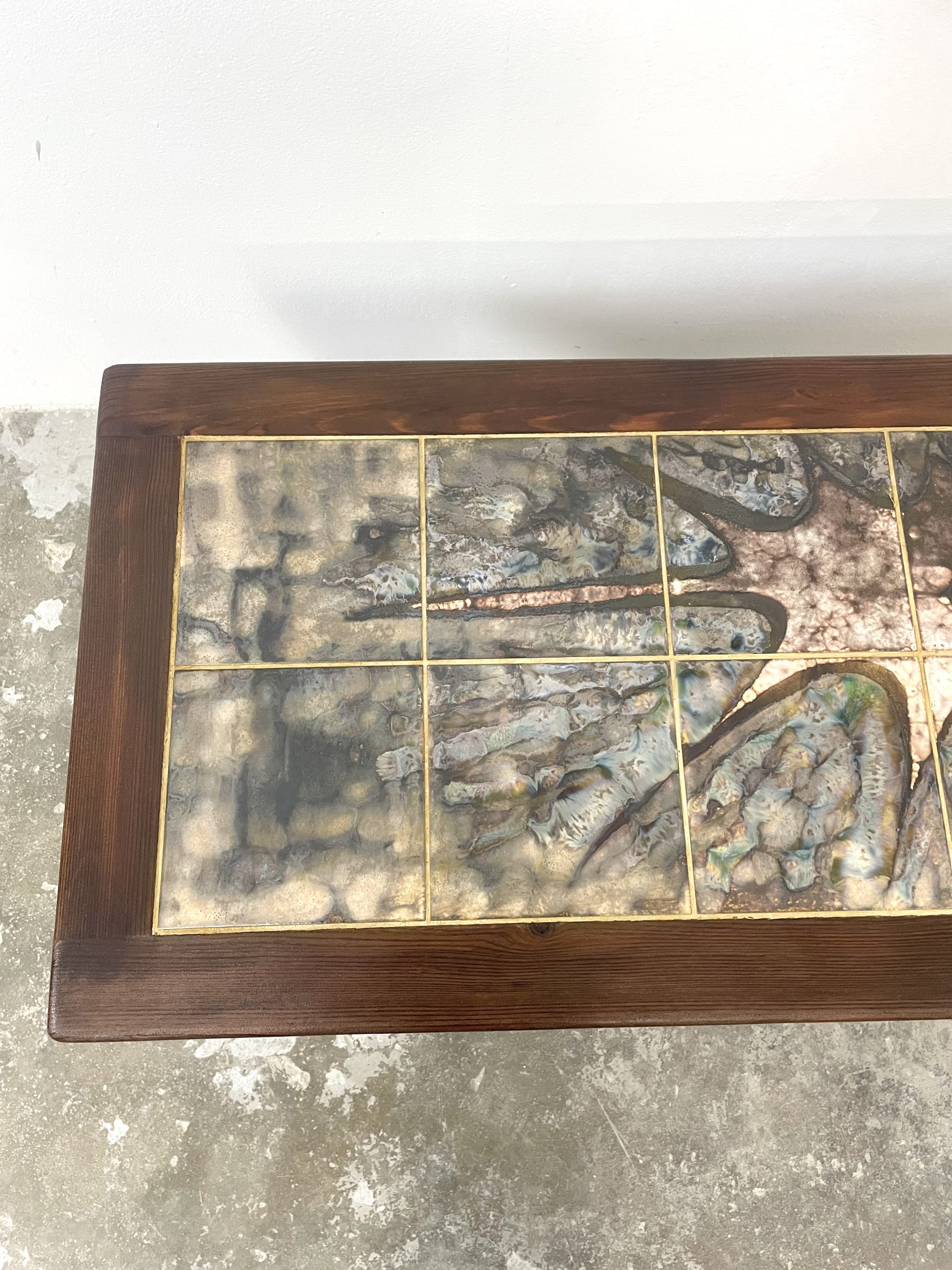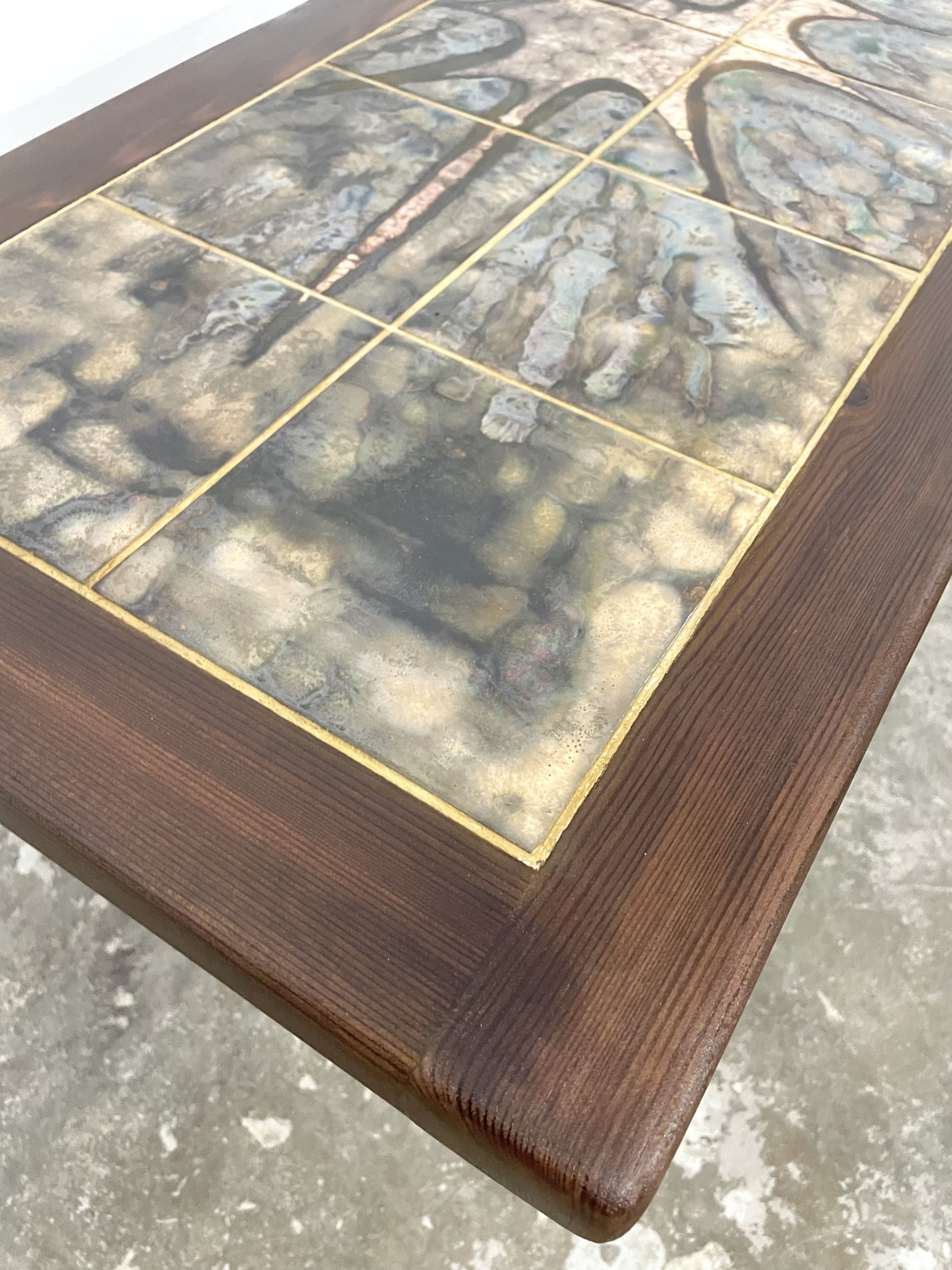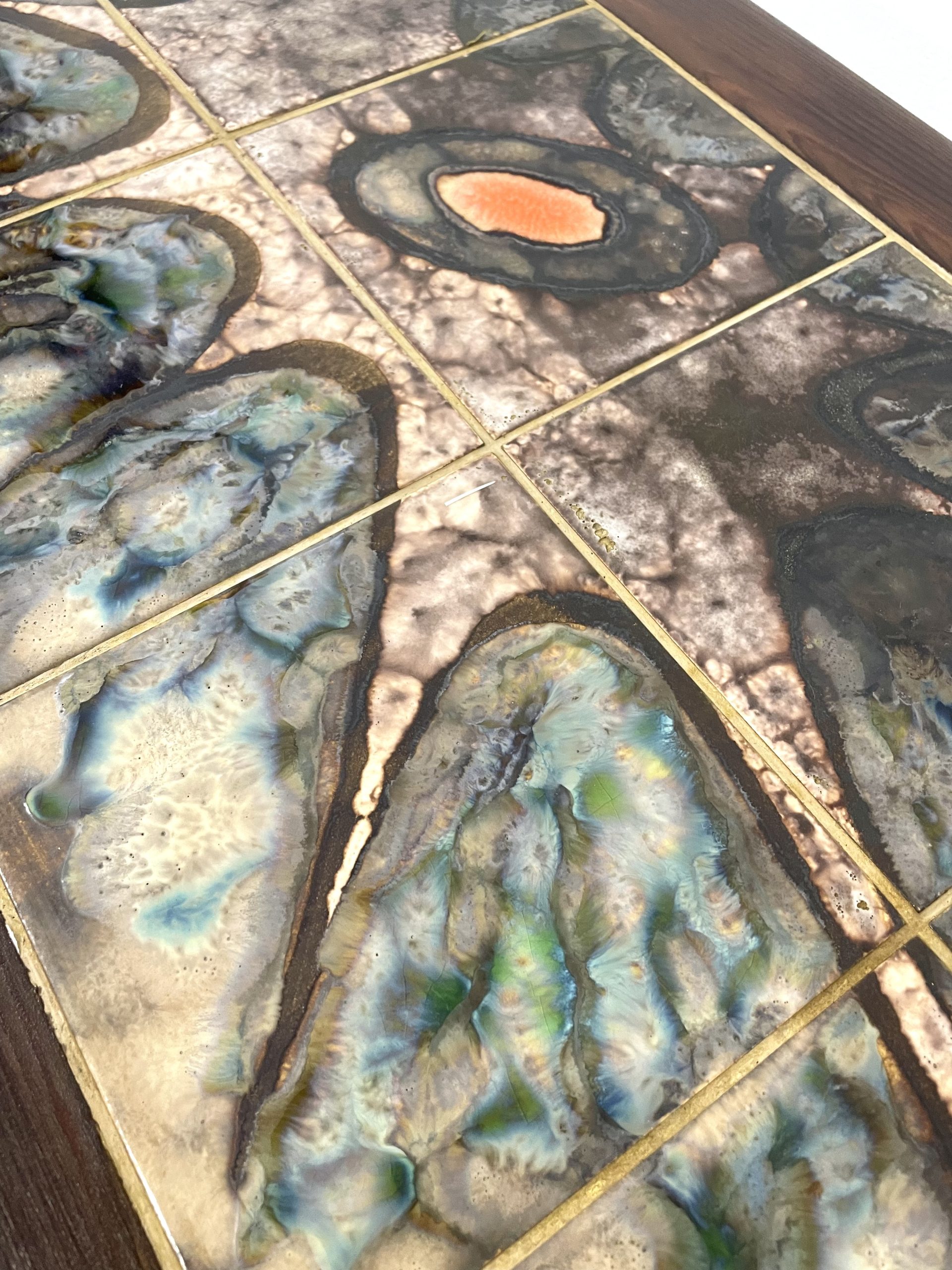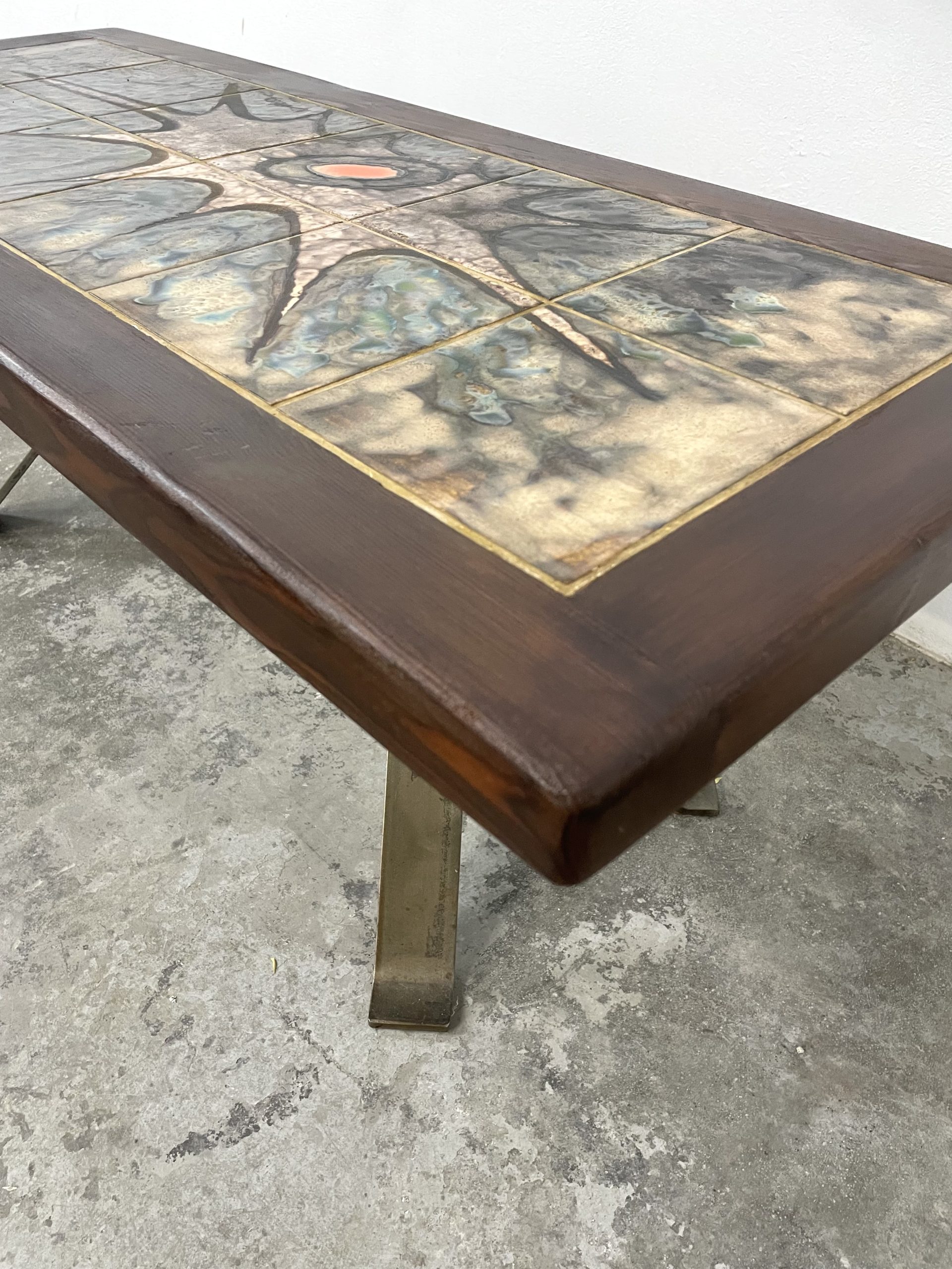 Mesa de centro de cerámica flat lava años 50 francesa, tipo Vallauris.